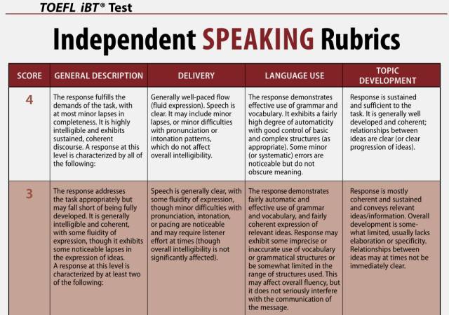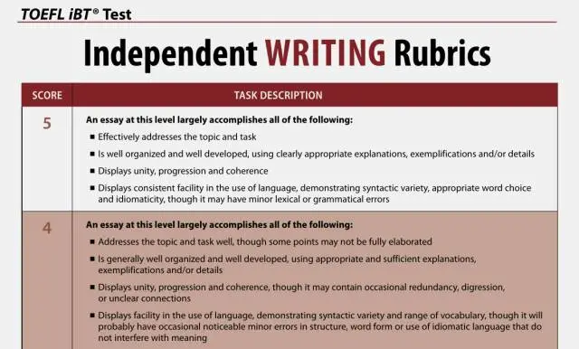 而当我们再来看,ETS官方给出的口语和作文评分标准的时候,这种感觉就更加的强烈!