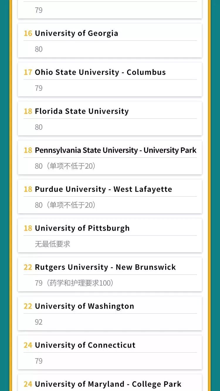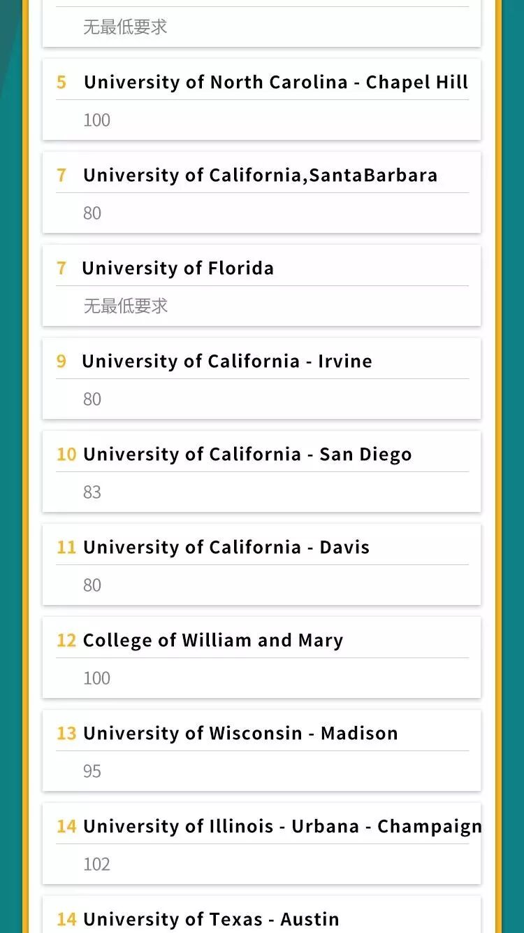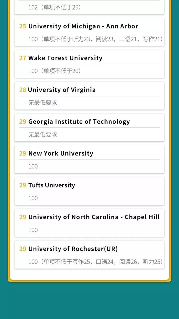 注:以上托福成绩来源于学校的官方网站,仅供参考,建议申请前登陆学校官网或者直接咨询学校获取最新信息。