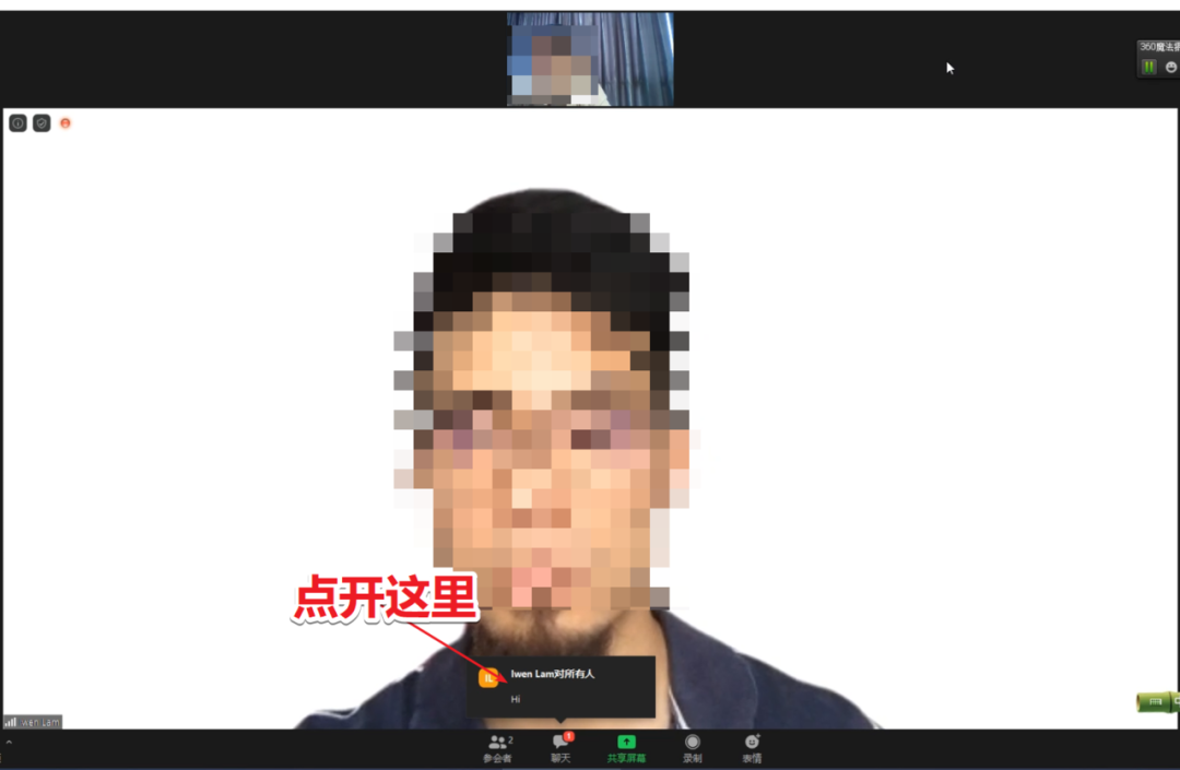 并且在此处考官还会让你打开Zoom的对话框,因为在考试的过程当中,在第3部分看图说话的环节,考官会给你发过来一个网址,我们打开那个网址之后会看到一张图片,看到这个图片之后,我们会需要进行看图说话。