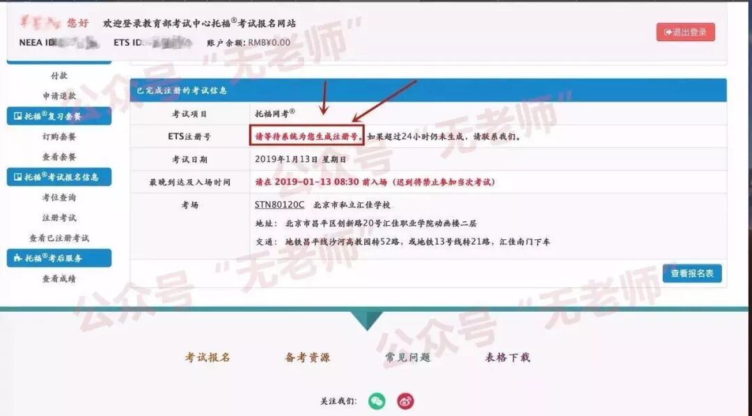 第十、只要没有看到“ETS注册号”,这几个字,如果报错了,都可以免费改考试时间。