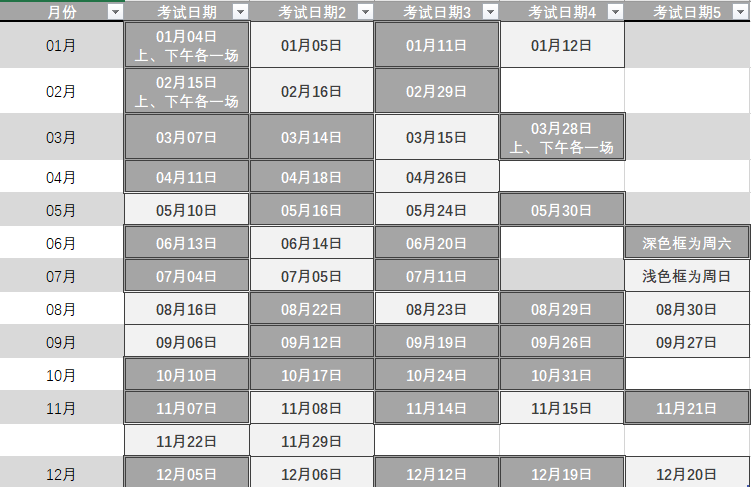 在这张表格当中,无老师也已经帮助各位无花果,不仅标注了上午场和下午场,而且还标记好了,周六和周日。