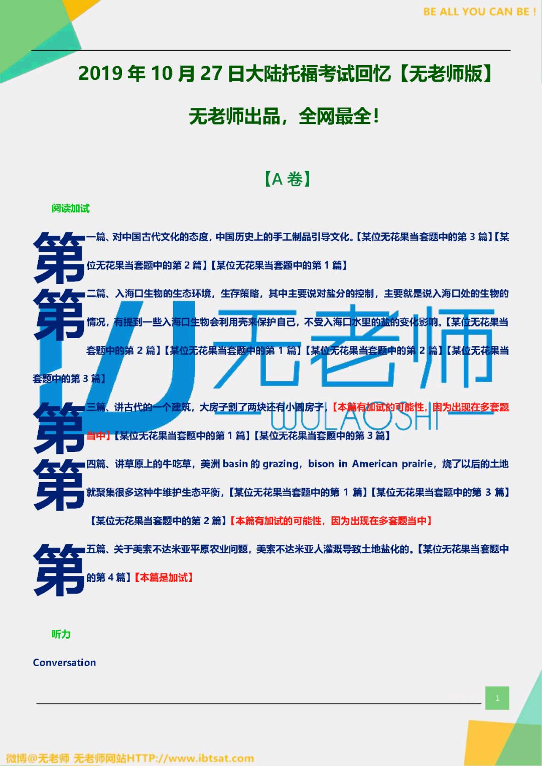 确定哪部分是加试题,以及剩余的超全的口语和作文回忆,请在微信公众号“无老师”后台,找小姐姐,回复“7”索要。